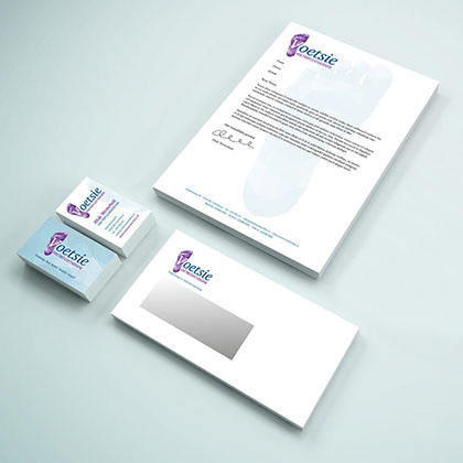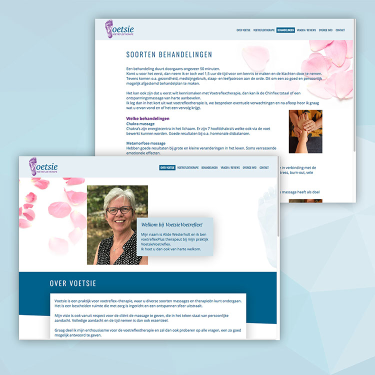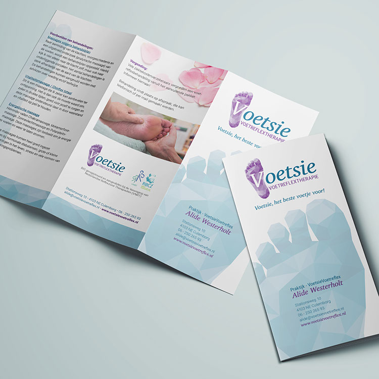 Ontwerp en uitvoering van complete huisstijl, van logo tot website voor deze praktijk voor voetreflex-therapie.